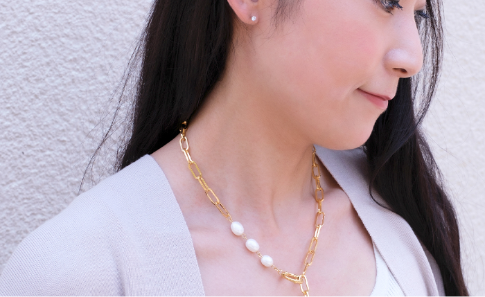 バロックパールとは、不揃いな形のパールのこと。定番のラウンド型より堅苦しくなく、ナチュラルに身につけられるところが魅力。地金との組み合わせデザインを選び、より今っぽくモダンにそしてファッションのアクセントになってくれます。‌‌‌‌ コーデがなんだか寂しい、物足りないというときに頼れるバロックパール。‌‌フェミニンとモードを兼ね備えた、大人世代こそ手に取りたいモチーフです。‌‌1点で存在感を放つから、トータルコーディネートを上品にまとめてくれます。‌‌ 当店ではサージカルステンレス316Lの5種類のデザインとシルバー925の6種類のデザイン、シルバー色とゴールド色の2色のカラー展開となっております。‌‌ お手頃な値段でオーダーメイド感覚で自分だけのオリジナルのバロックパールネックレスをぜひ手に入れてくださいね。 >ジュエリーミュージアムのバロックパールネックレスの購入はこちらから...