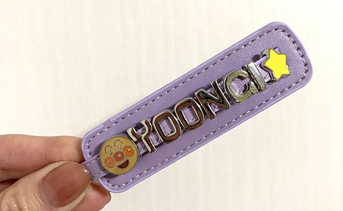 食事のあと、私はバタコさんの手づくりハウスで推し活に。お名前メタルストラップを自分の推しの名前で好きにパーツを組み合わせて作りました。とても人気で10代20代の女の子でにぎわってました。また身内の赤ちゃんのプレゼントにお名前刺繡サービスを利用して購入したスタイに刺繡をお願いしました。また一緒に購入したミュージアム限定のシールワッペンを配置なども指定してセミオーダーの特製スタイを作っていただきました。