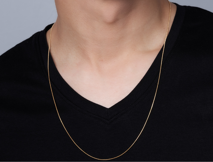 80cmは男性向けネックレスとしてはかなり長いサイズです。薄手のトップスに合わせるとみぞおちあたりまで届くため、体格のいい方が冬のアウターの上から身につけても、しっかりと長さをキープできます。