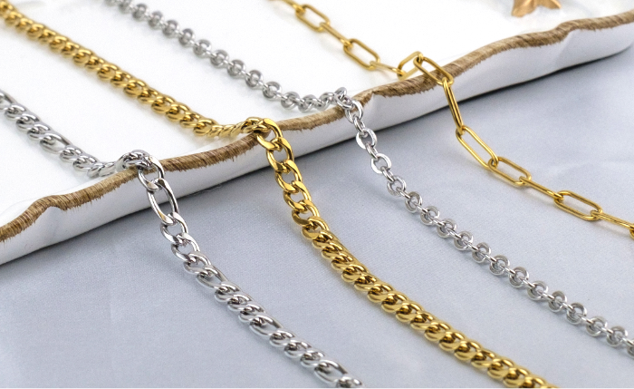 金属アレルギーの方も安心して身につけられる、サージカルステンレス(SUS316L)を使用したチェーンネックレスをサイズ・デザイン豊富に取り揃えています。