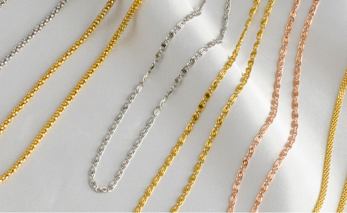 トップパーツに比べてチェーンが華奢すぎる場合、少しの動きでトップパーツが動き回ってしまうため、やや重量感のあるものを選ぶと扱いやすいでしょう。