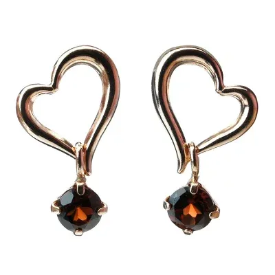 オープンハートにラウンドカットのガーネットが揺れる、大人の気品あふれるピアスです。