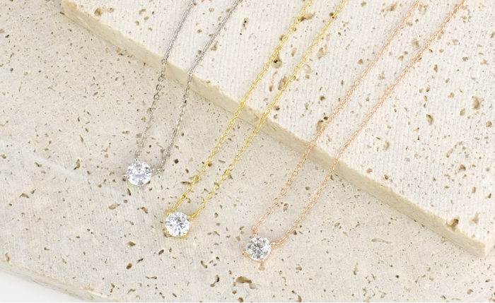 例えば、大人らしい印象を与える上品な一粒ストーンのネックレスは、職場・プライベート問わずに身につけられるため、人気のデザインです。
