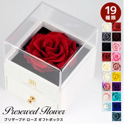 ほかにも、以下のブリザーブドフラワーのバラ付きのボックスも人気です。